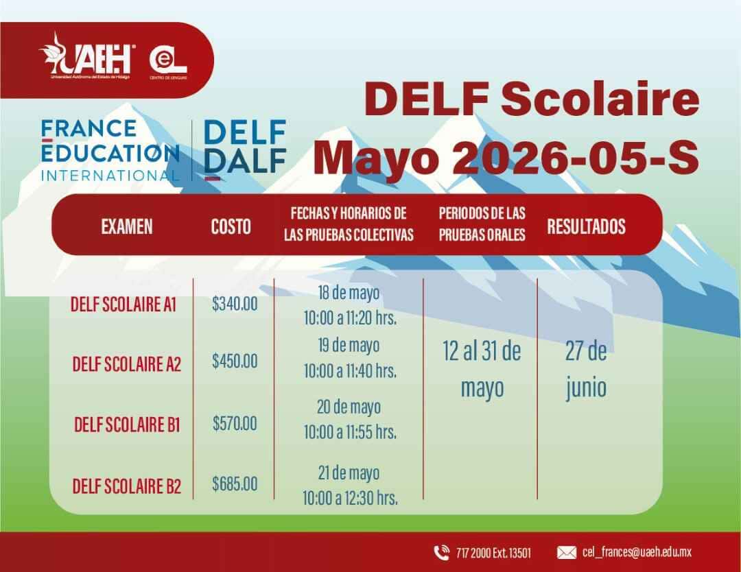 El Centro Certificador Pachuca Université Autonome, comparte información de la próxima convocatoria de la certificación internacional en lengua francesa DELF Junior - Sesión mayo 2026.