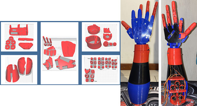 FOTO 1. Piezas impresas en 3D y prototipo completamente ensamblado