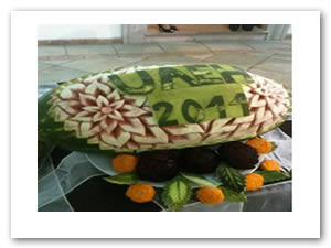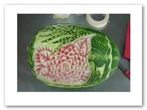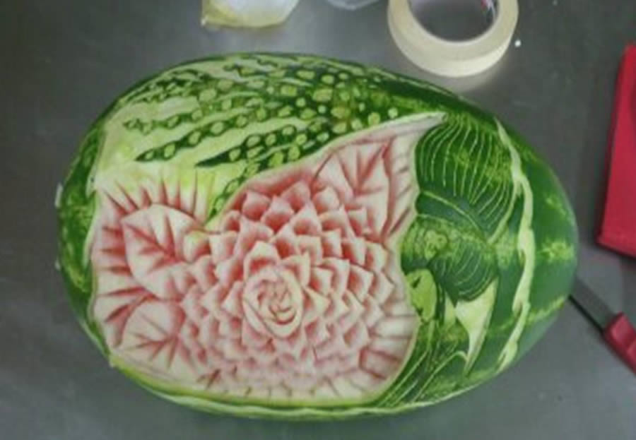 This practice analyzes the composition of colors, shell rigidity, pulp stability and it distances the one that are the seeds of the watermelon, with these bases the practitioner it can feel insurance to remove shell, to form bases, to introduce the knife without to perforate the fruit and to form a beautiful sculpture, besides introducing the student in those carved representative of the Thai technique in complement to the art Kaishiki.